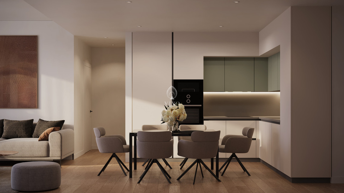 En suite shower, Modern design, Near amenities, Double glazing, Walk-in closet, Pressurized water system, Fitted wardrobes, Connected to electric mains, Combined kitchen and dining area, Easy access to main roads, Easy access to highway, Thermal insulation