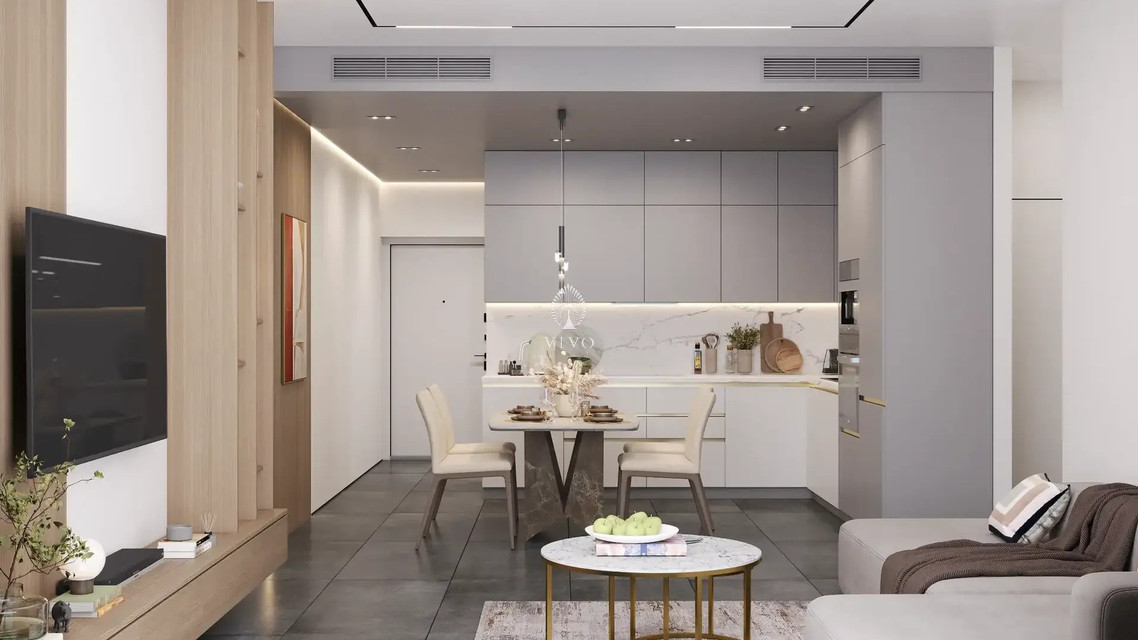 Installed concealed air-conditioning unit ( VRV ) in living/kitchen area;