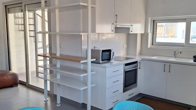 Modern and spacious two-bedroom penthouse featuring an open-plan living area with a fully equipped kitchen.