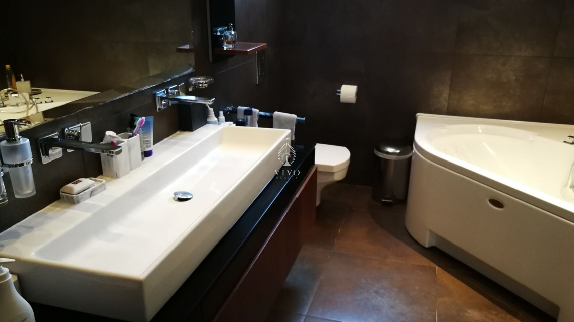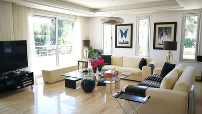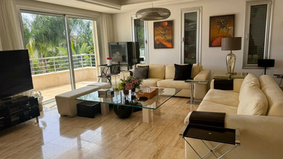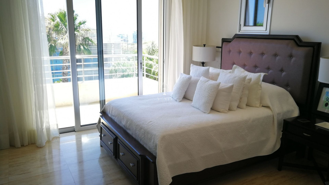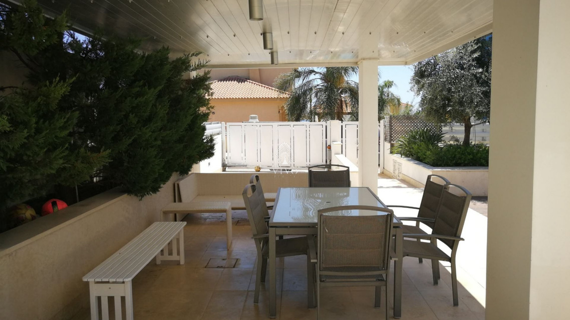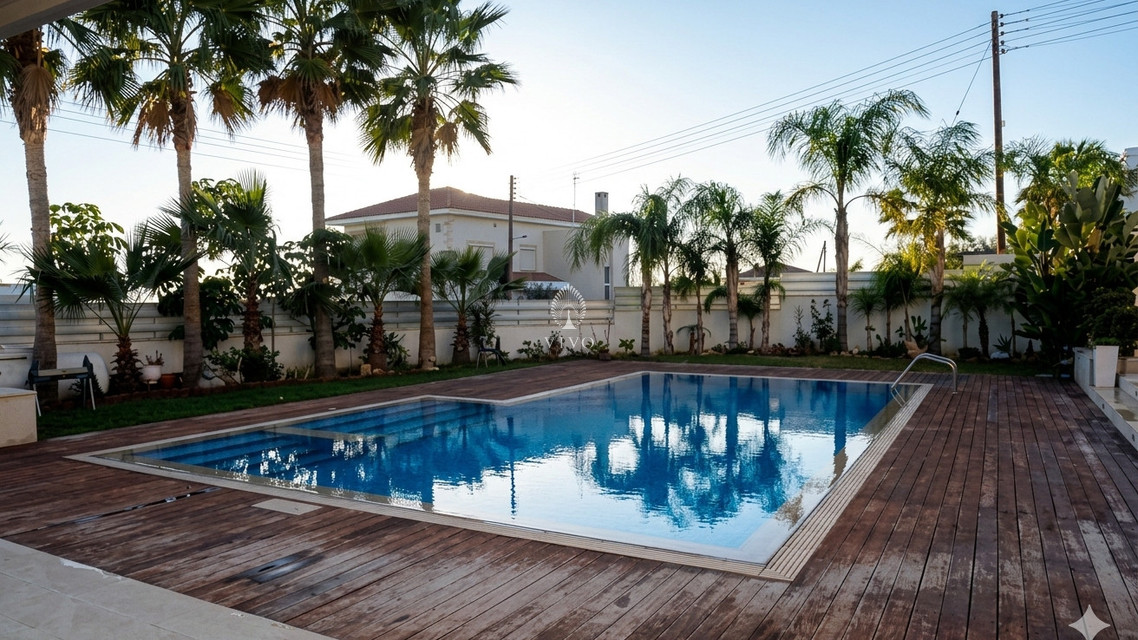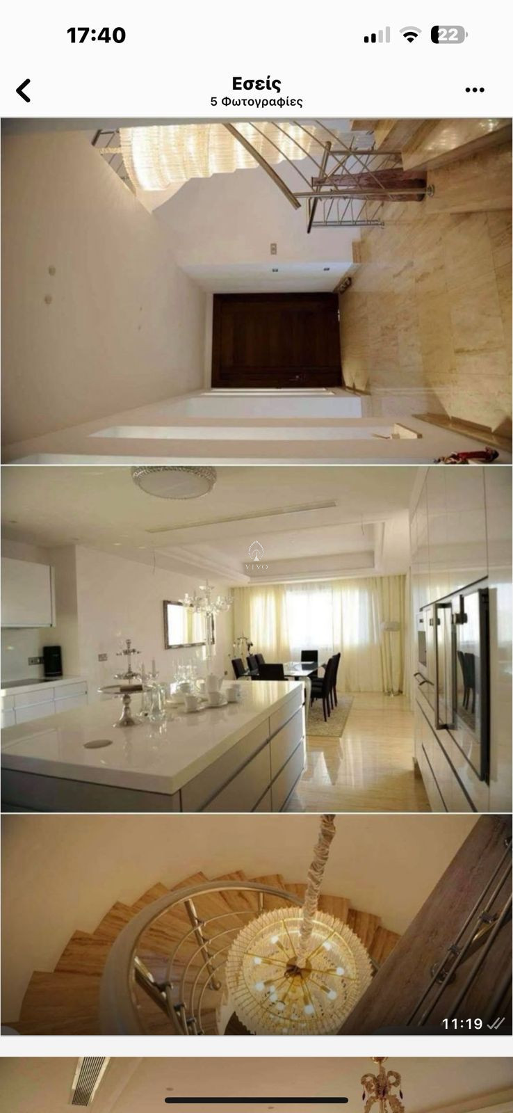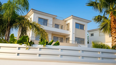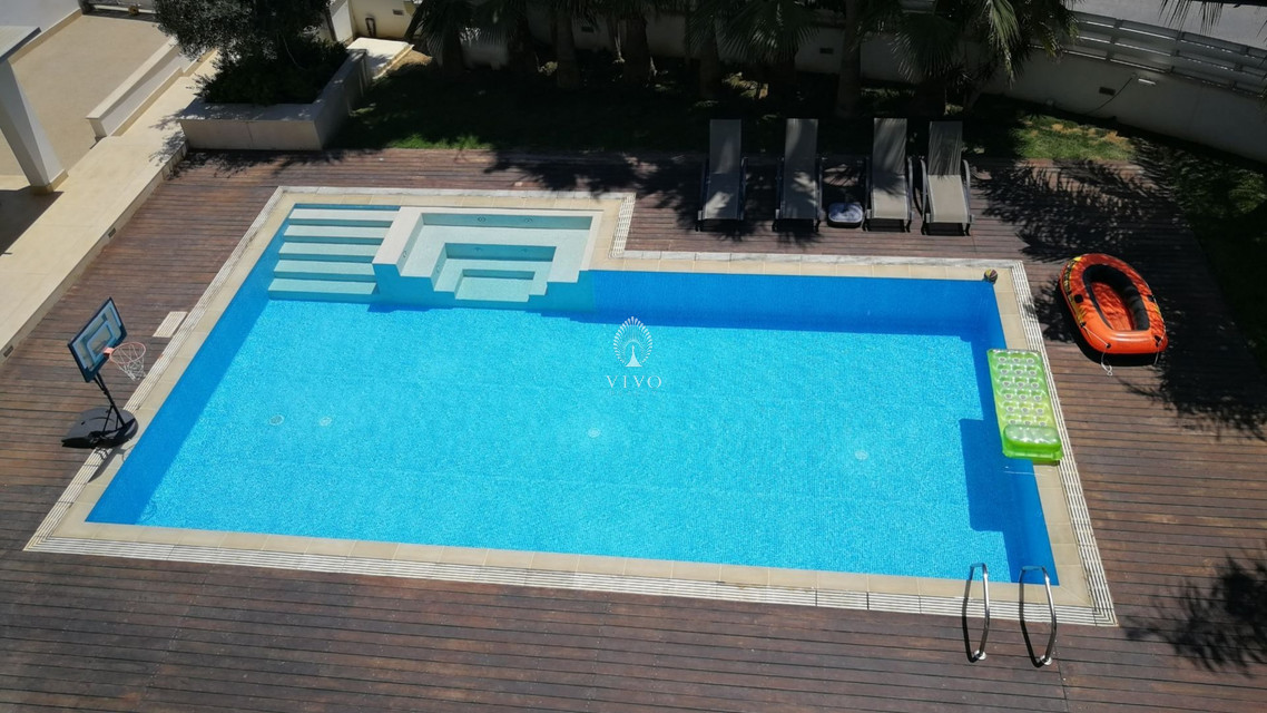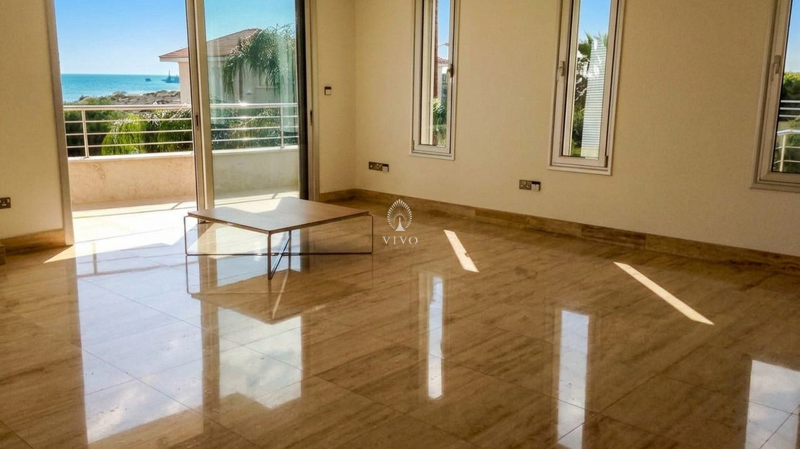 A spectacular luxurious five bedroom villa situated in a quiet neighborhood on the privileged hills of Agios Tychonas with panoramic sea views from all floors. Just three minutes distance from the seafront, all amenities and famous 5* Hotels. The villa stands on a plot of 856m2 and has covered areas of approx. 490m2 on three levels. The villa was built by the owners with high quality materials giving attention to every detail. Outside there is a big beautiful mature garden with palm trees and grass a private overflow swimming pool of 65m2 with jacuzzi surrounded by a deck, outside shower, huge verandas, BBQ area, garden lights and lots of parking space with electric gates. Entering the house from it's large Irocco wood door, we have a nice hall with closet space, large spacious living area with nice atmosphere ceiling spot lights, spacious separate fully equipped German kitchen (Siematic, Gaggenau and Miele) with island bar, Corian surfaces and extra kitchenette, elegant dining room and large front and back veranda. On the top floor we have the three very big bedrooms all en-suite with Jacuzzi, Italian wardrobes and veranda with breathtaking views. On the lower level we have an extra very bright identical sitting and kitchen area as the ground floor, with another two bedrooms, laundry room, small gym and access to the garden/pool/barbecue area. Automatic security system, alarm & cameras, central A/C system and underfloor heating are just some of the extras. A must see villa with ready title deeds.