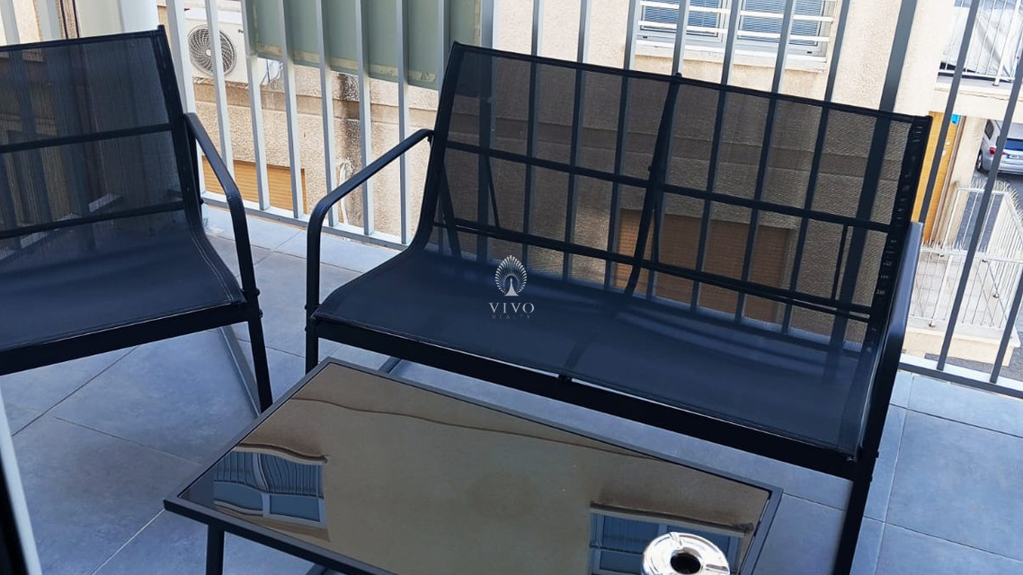 There are **two spacious bedrooms** and a **modern family bathroom**. Additional features include **A/C units in all areas**, a **dedicated parking space**, and the property is offered **fully furnished and equipped**, ready for immediate occupancy.