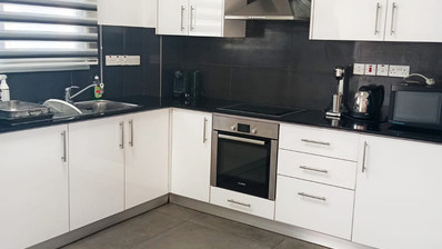 Situated at the end of a cul-de-sac, opposite a park, the home features a spacious open-plan living and dining area, a fully equipped open-plan kitchen with access to the backyard, and a guest WC on the ground floor.