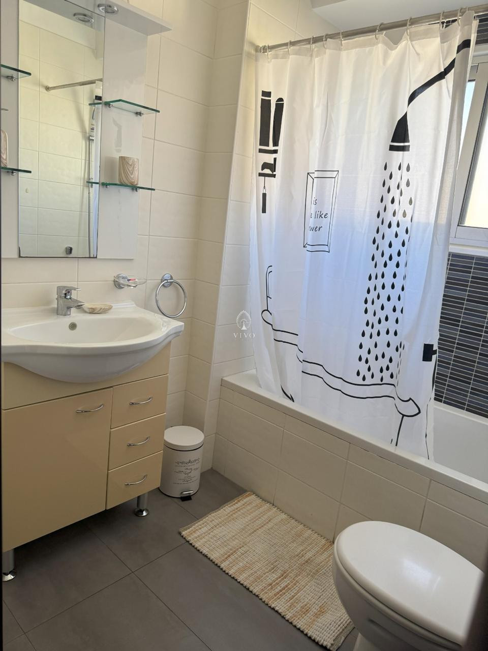 This fully furnished and equipped apartment is move-in ready, complete with all essential utensils and linen. It features a spacious living and dining area, a separate kitchen, one bathroom, and an additional guest WC.