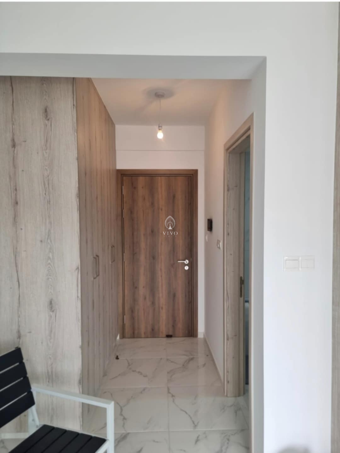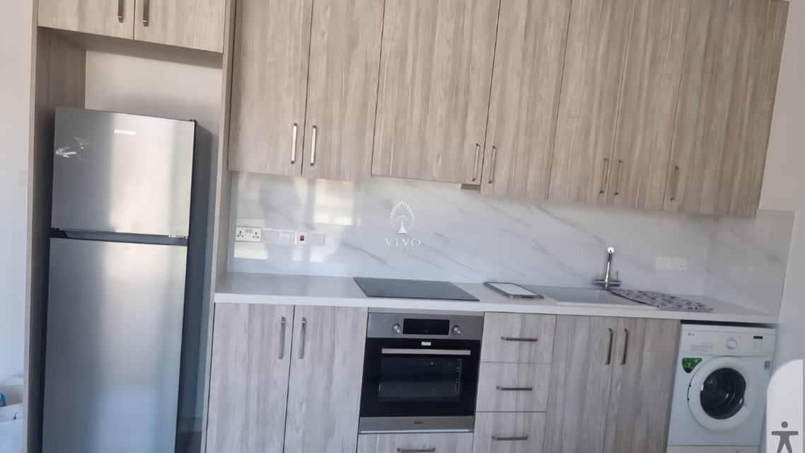 Situated on the third floor of a small, brand-new residential building, it features an open-plan layout of 45 sq.m. with a fitted kitchen, a comfortable living area, and access to a covered veranda with open views. The property also includes a bathroom, private storage room, and dedicated parking space.