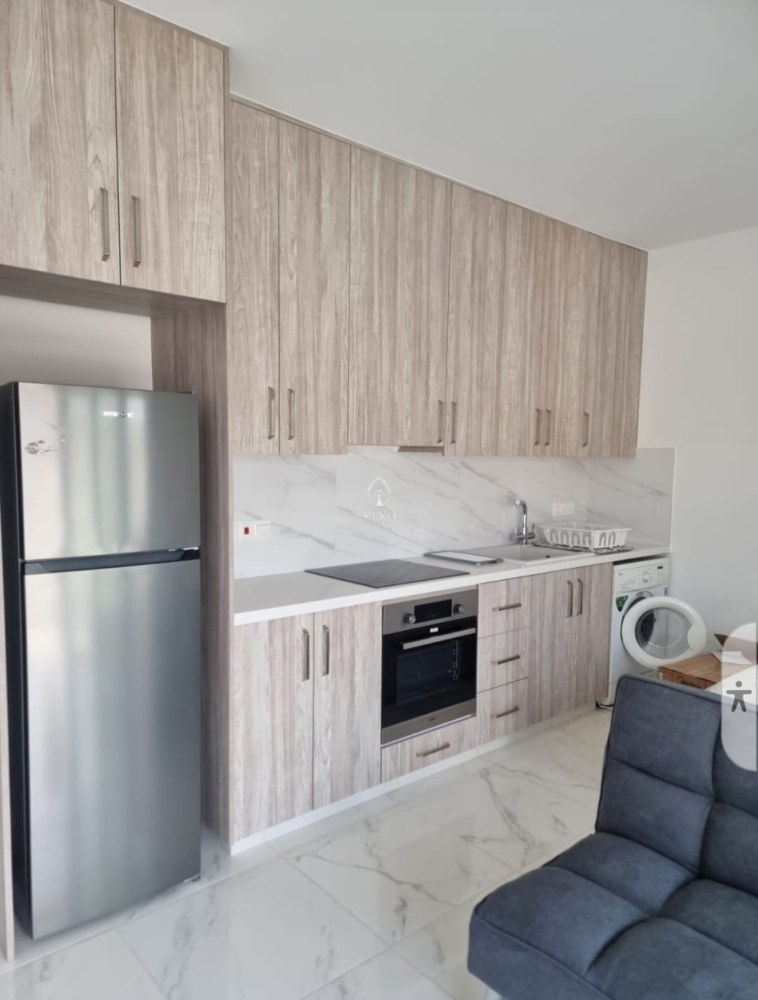 This modern studio is located in a quiet residential neighborhood in Agia Fyla, close to all amenities and offering easy access to main roads and the highway.