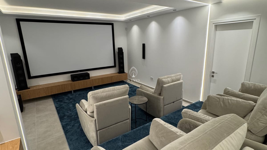 * Custom-built **sauna**, fully equipped **gym**, and a dedicated **cinema room** featuring a 4K projector and advanced audio system for immersive entertainment.