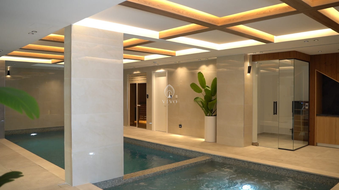 * **Indoor and outdoor swimming pools** with **saltwater systems**, heated indoor pool, and a **10-person Jacuzzi**—your own private wellness retreat.