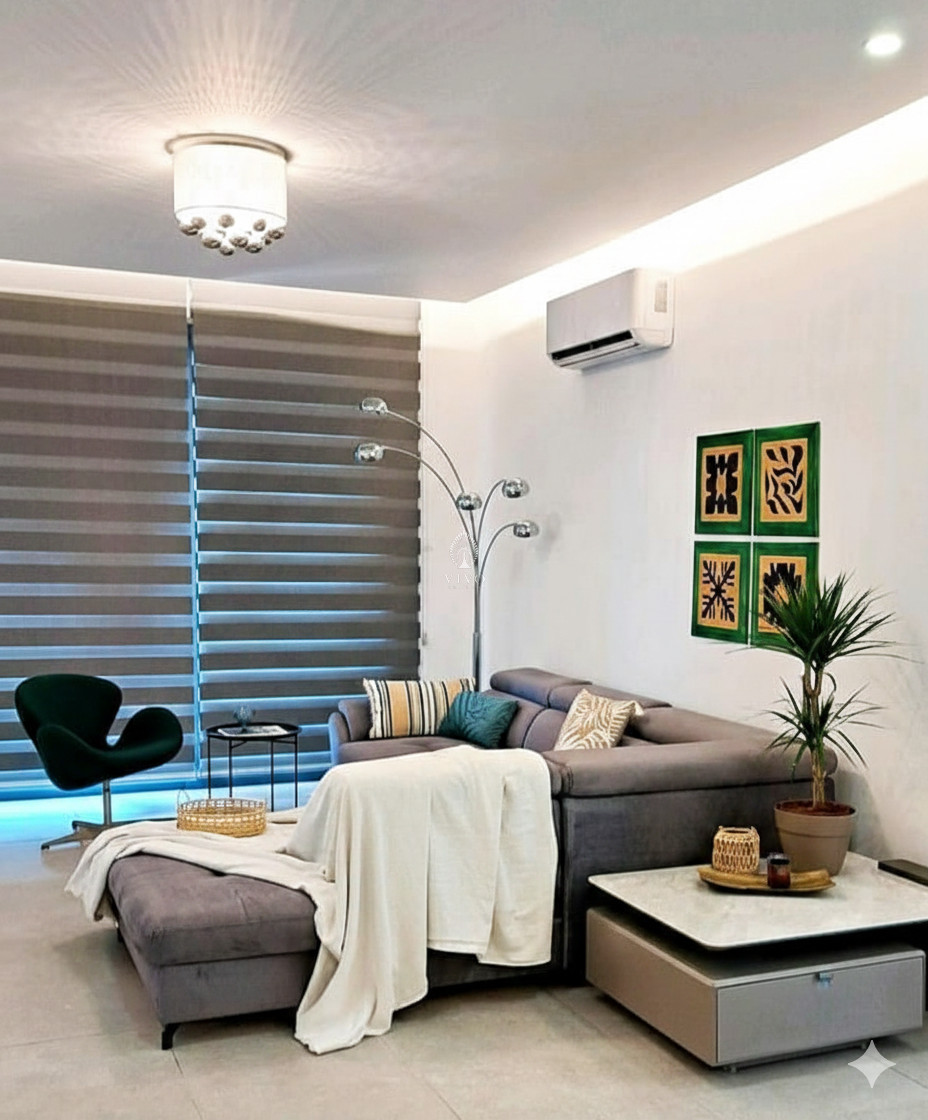 Tech & Comfort: 55” Smart TV, electric mirrors in bathrooms, and elegant LED downlighting in the kitchen and living areas.