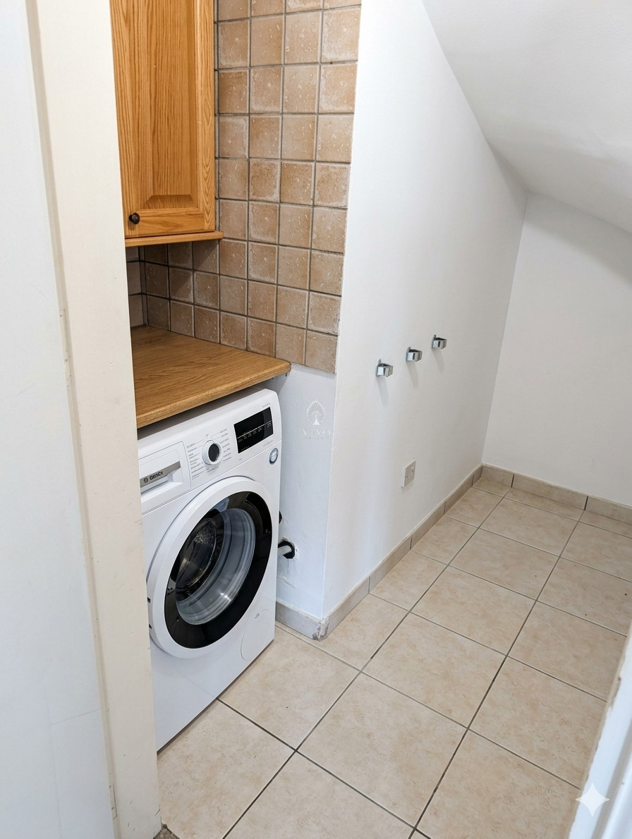 The ground floor comprises a spacious open-plan living and dining area, along with a fully equipped modern kitchen that opens onto a covered rear veranda—perfect for relaxing or entertaining. A separate laundry room and a guest WC complete this level.