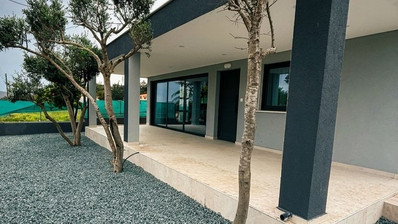 The property is set on a generous 650 sq.m. plot, featuring a landscaped garden along with both covered and uncovered parking spaces.