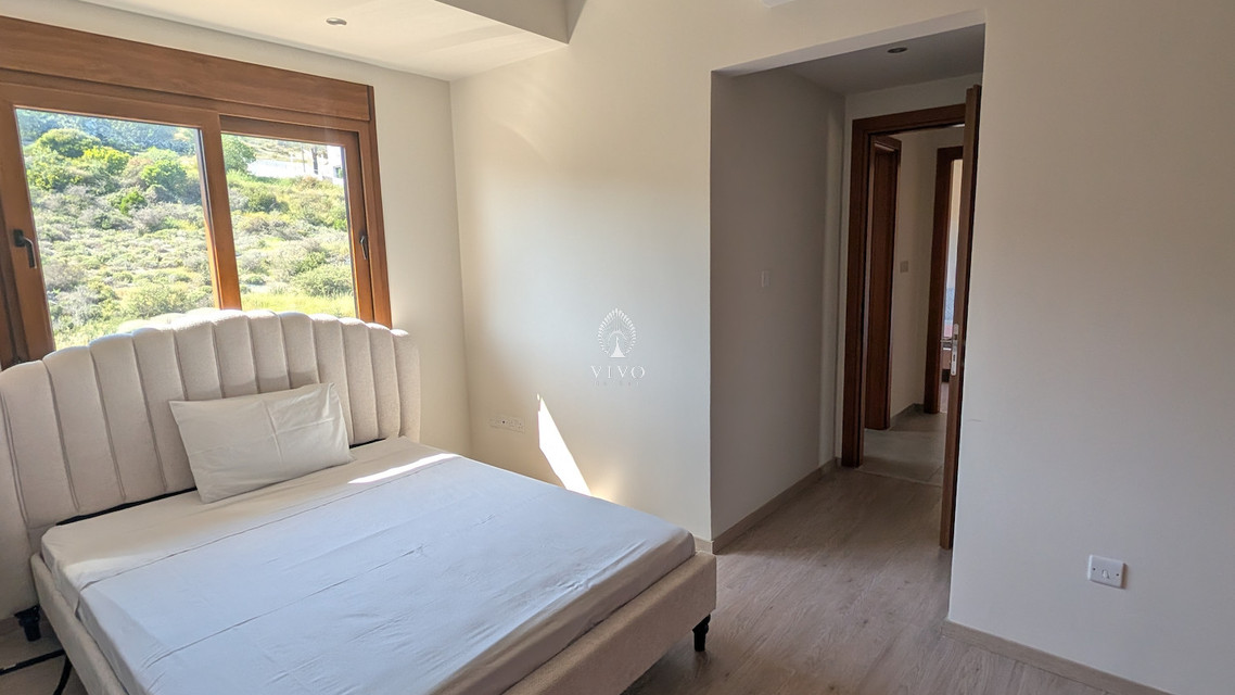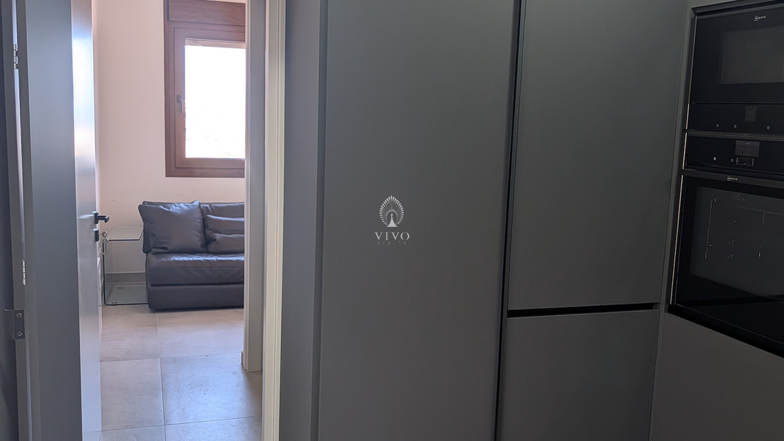The property offers three well-proportioned bedrooms, including a master bedroom with an en-suite bathroom, walk-in closet, and direct access to spacious veranda, enjoying both sea and mountain views. A family bathroom, guest WC, and a dedicated laundry area complete the interior spaces.