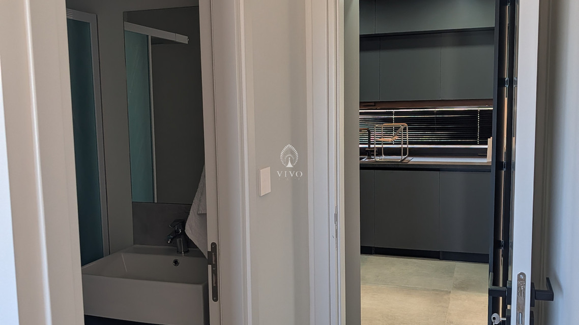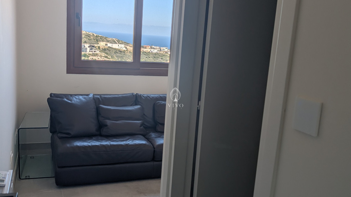 Located within a small residential building in a private complex, the property features a spacious and thoughtfully designed layout. The apartment comprises a bright open-plan living and dining area, seamlessly connected to a large veranda with panoramic sea views, ideal for both relaxation and entertaining.