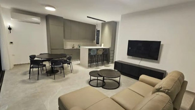 - The kitchen in the apartment is thoughtfully designed with ample space and is accompanied by a dining area, creating a comfortable and practical living setting with a balcony, complete with an 85-inch smart TV and sound system. Additionally, there's a wine cellar for wine enthusiasts.