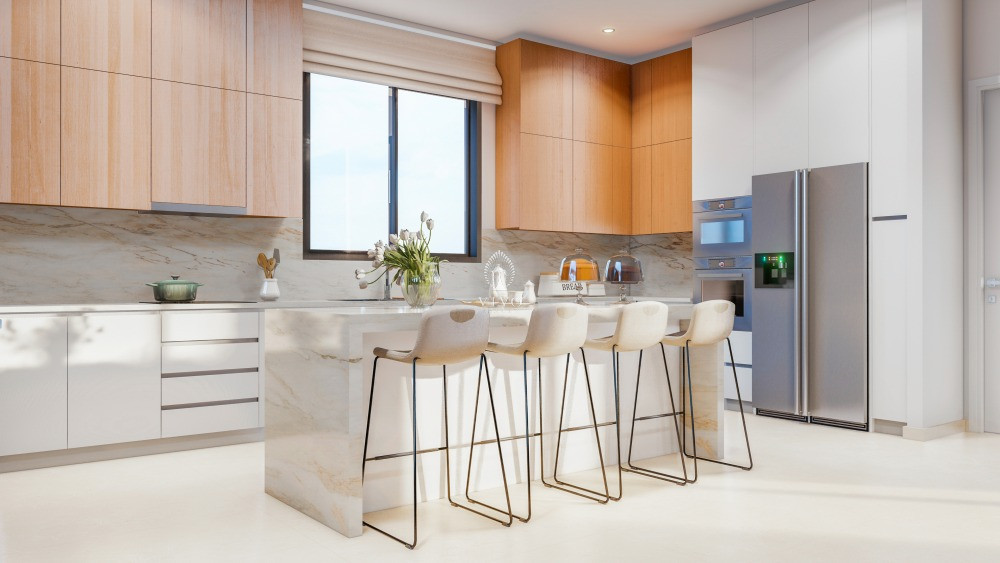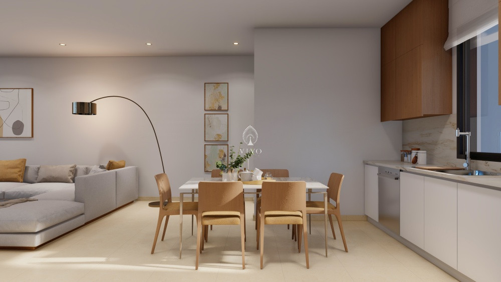 The spacious 2-bedroom apartments are thoughtfully designed with high ceilings, large windows, and open-plan living areas that capture stunning sea and sunset views. Every detail reflects minimalist luxury and modern functionality, creating an inviting and sophisticated home environment.