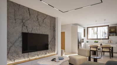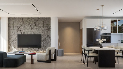 Each apartment features a bright open-plan layout with a premium Italian kitchen, stylish finishes, and expansive windows that fill the space with natural light. The intelligent design maximizes every square meter, creating a perfect balance of comfort and modern functionality.