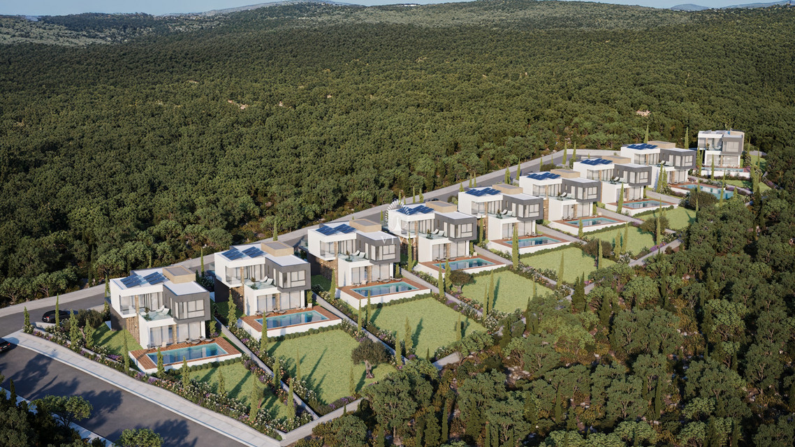 For sale: A modern detached villa under construction, offering a total internal space of 180 m2. This spacious home features three bedrooms and three bathrooms, designed with comfort and privacy in mind. The villa is set on a large plot within a secure, gated complex, giving you both peace of mind and plenty of outdoor space.