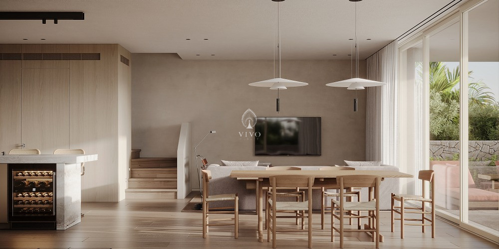 The villa features expansive living areas, natural stone and warm wood finishes, and clean, modern lines with a touch of Mediterranean tradition. It boasts a private pool, a charming courtyard, and a lush garden with mature trees—perfect for family life, entertaining guests, or simply relaxing in privacy.