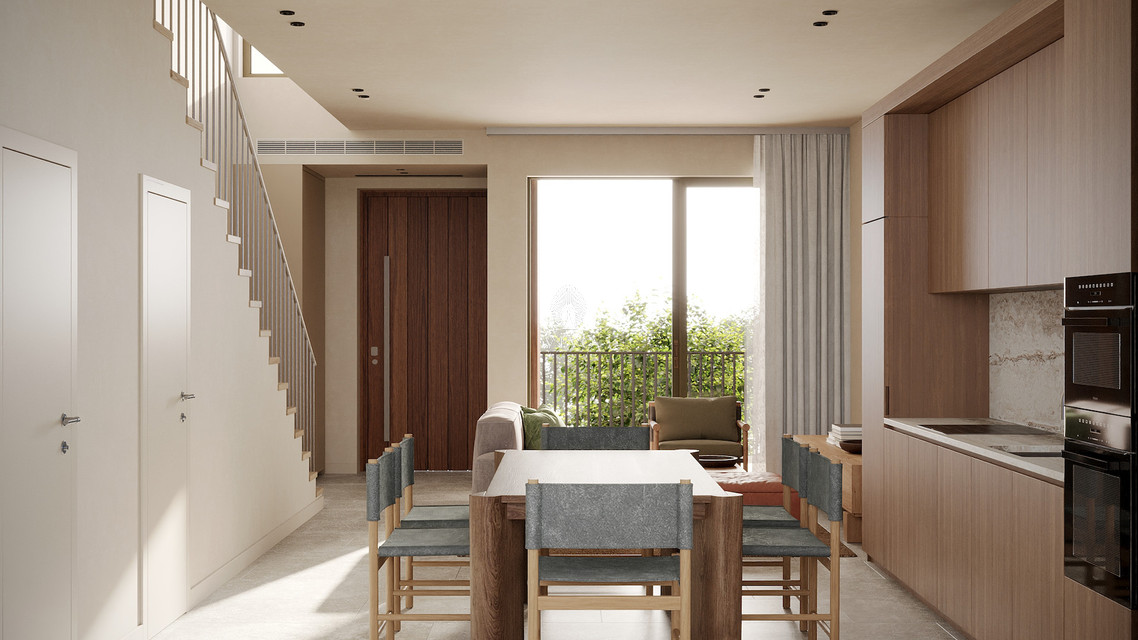 This contemporary multi-level townhouse is crafted to combine sophistication with practicality. Built with sustainable, high-quality materials, every element showcases durability and timeless design. Generous windows fill the interiors with natural light, creating airy, open spaces that seamlessly connect indoor and outdoor living.