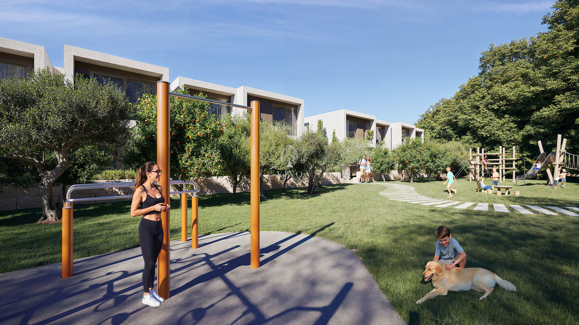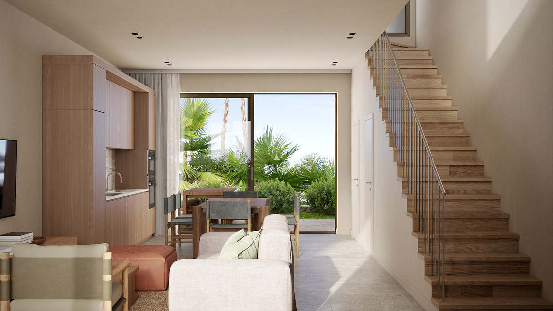 Step onto your private terrace or enjoy the shared communal garden for relaxation and social moments. The townhouse offers outdoor areas ideal for al fresco dining, barbecues, or simply soaking in the Mediterranean atmosphere. Designed with comfort and privacy in mind, it invites both lively gatherings and peaceful moments alike.