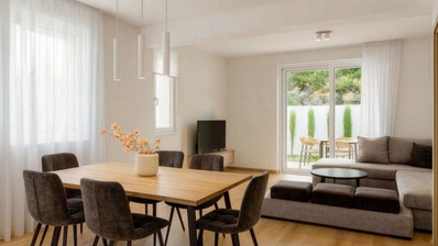 Spacious open-plan interiors are filled with natural light, creating a warm and inviting atmosphere. Large windows and patio doors connect seamlessly to private outdoor areas, ideal for relaxing or entertaining.