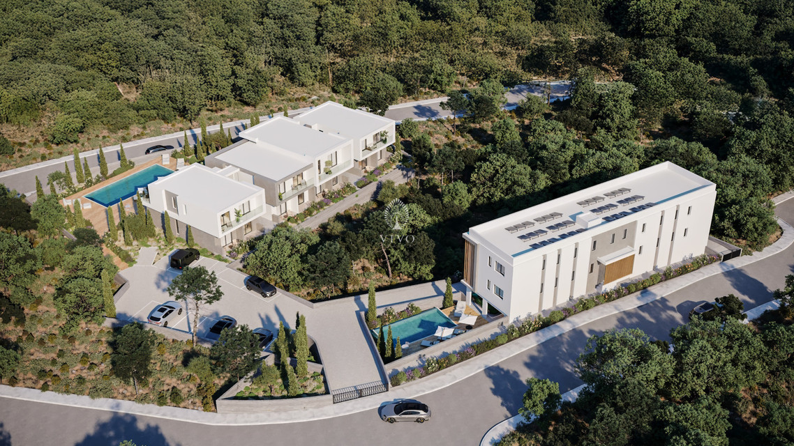 For sale is a modern off-plan apartment offering comfortable living in the sought-after area of Tombs of the Kings. This stylish residence boasts an internal space of 77 square meters, featuring two bedrooms and one well-appointed bathroom. It is situated on the first floor of a small, two-story building with elevator access, ensuring convenience for all residents.