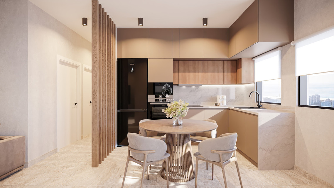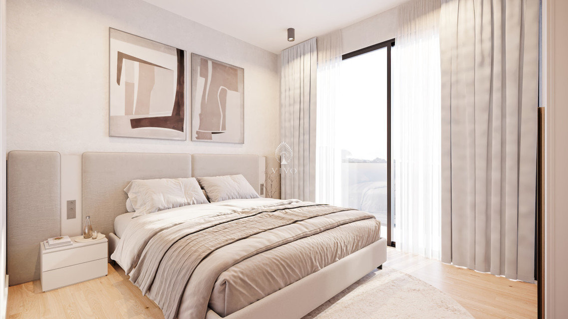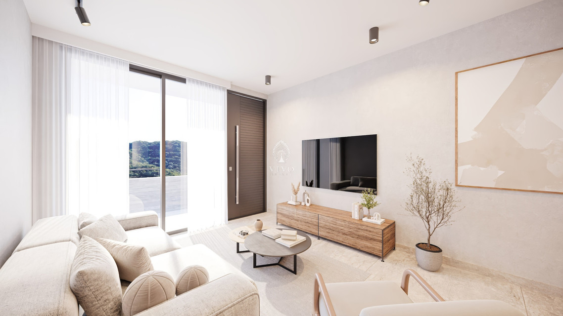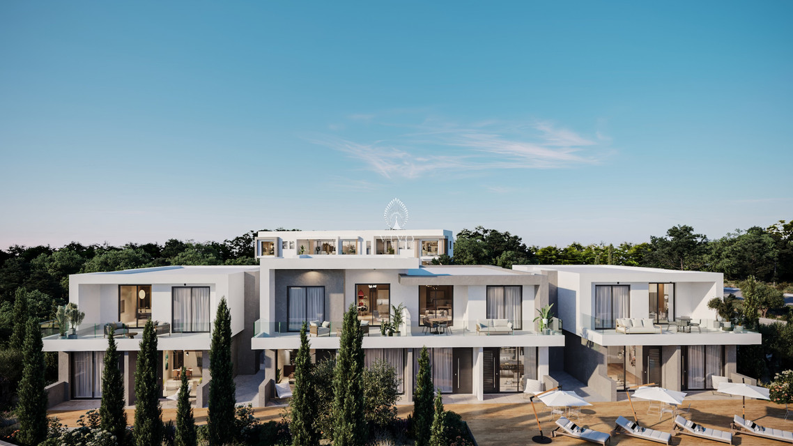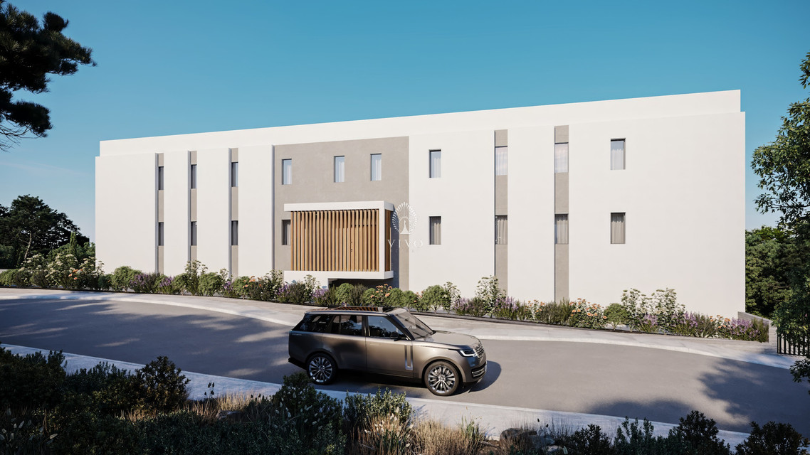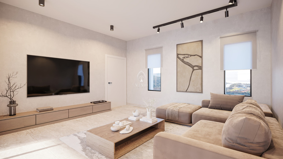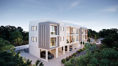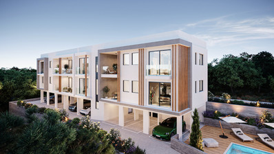 For sale is a modern off-plan apartment offering comfortable living in the sought-after area of Tombs of the Kings. This stylish residence boasts an internal space of 77 square meters, featuring two bedrooms and one well-appointed bathroom. It is situated on the second floor of a small, two-story building with elevator access, ensuring convenience for all residents.