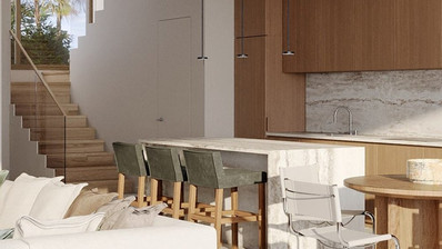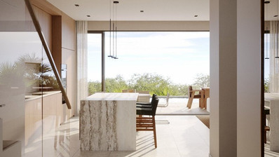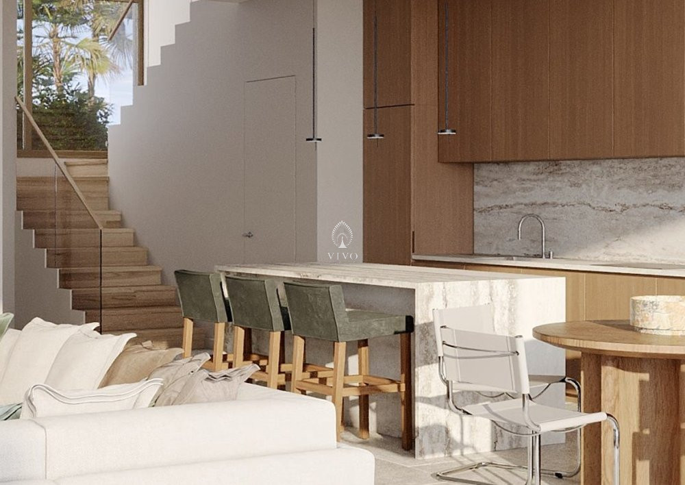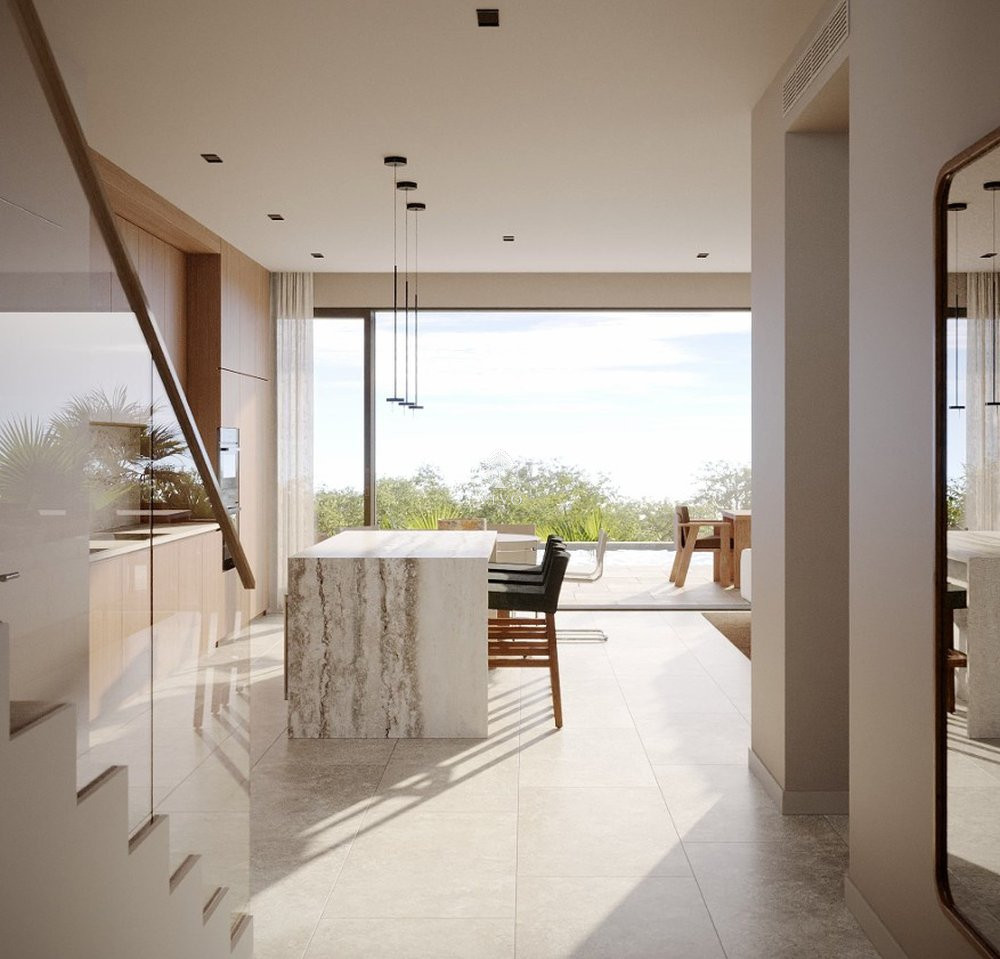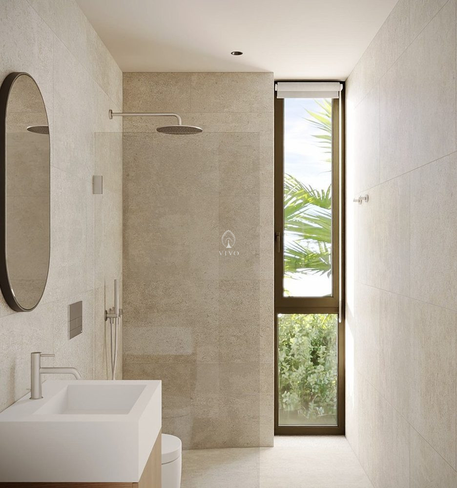 The interior design across the development follows the same natural philosophy as the exterior, with earthy tones and premium materials that create a warm, harmonious atmosphere. Generous openings ensure that every space feels bright and connected to nature, overlooking the private garden oasis and lush surrounding green areas.