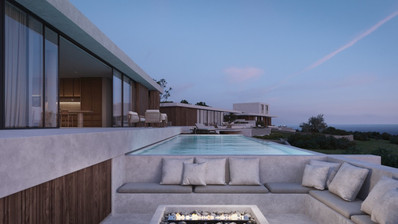 This exclusive 5-bedroom villa combines quiet elegance and a calm lifestyle, seamlessly integrated into its natural surroundings. Natural stone cladding and planted roofs echo the textures and colors of the landscape, creating a home that feels both sophisticated and in harmony with nature.