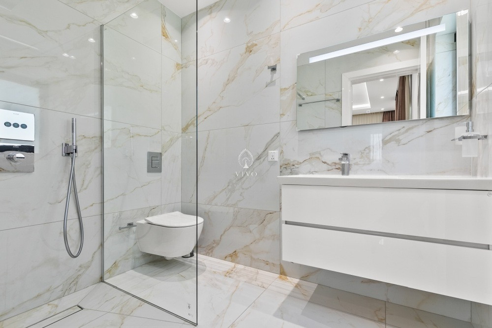 Energy Class A: modern insulation, energy-efficient windows, LED lighting, solar collectors, smart home system, and appliances
