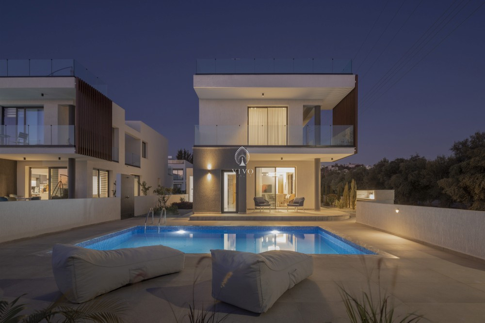 This exclusive collection of 4-bedroom villas is a unique architectural masterpiece nestled in the heart of the Lower Chloraka foothills, offering exceptional sea views and an elevated Mediterranean lifestyle. Designed by the award-winning Epitessera Architects, the villas showcase innovative layouts, refined aesthetics, and superb functionality.