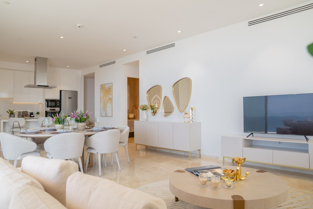 Bright, open-plan living spaces finished to the highest standards, flooded with natural light from floor-to-ceiling windows
