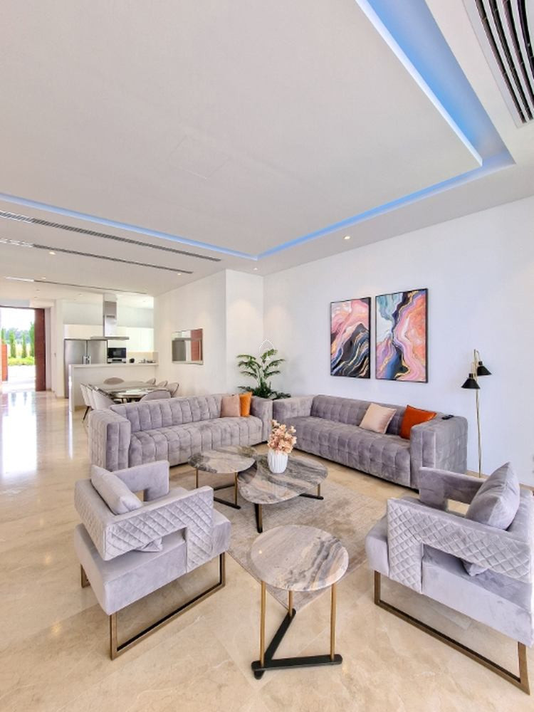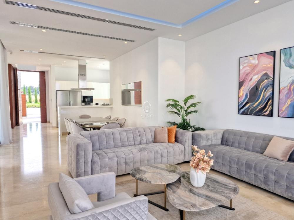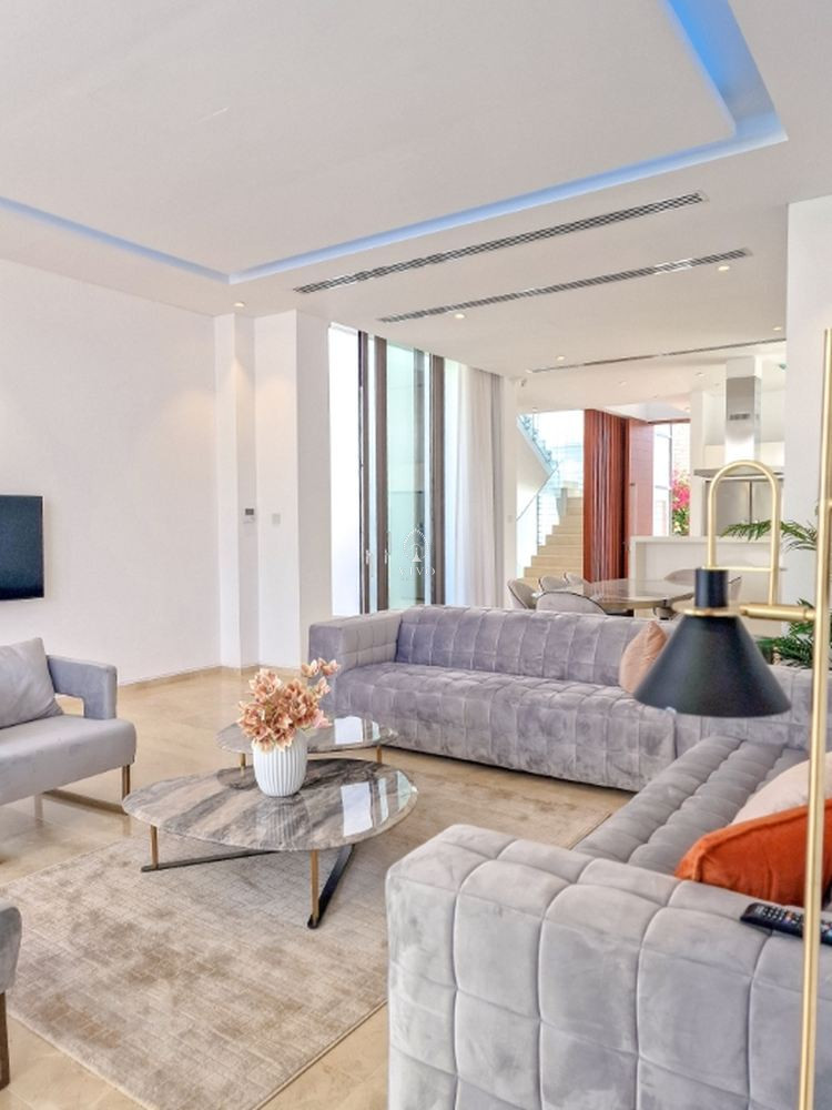 The villa features a spacious open-plan layout, contemporary architecture, and panoramic windows that fill the interiors with natural light. Residents can enjoy a private swimming pool, a beautifully landscaped garden, and expansive verandas ideal for soaking in the stunning Mediterranean sunrises and sunsets.