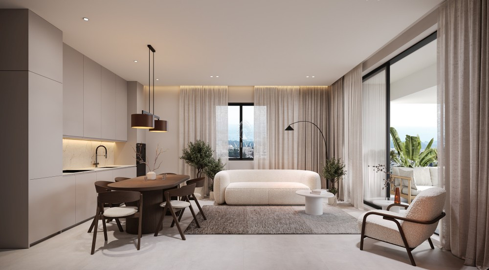 Discover a 1-bedroom apartment in an exclusive boutique residential project nestled in the peaceful hills of Geroskipou. Thoughtfully designed as a stepped architectural masterpiece that follows the natural slope of the land, this apartment offers exceptional privacy, abundant natural light, and breathtaking open views from every room.