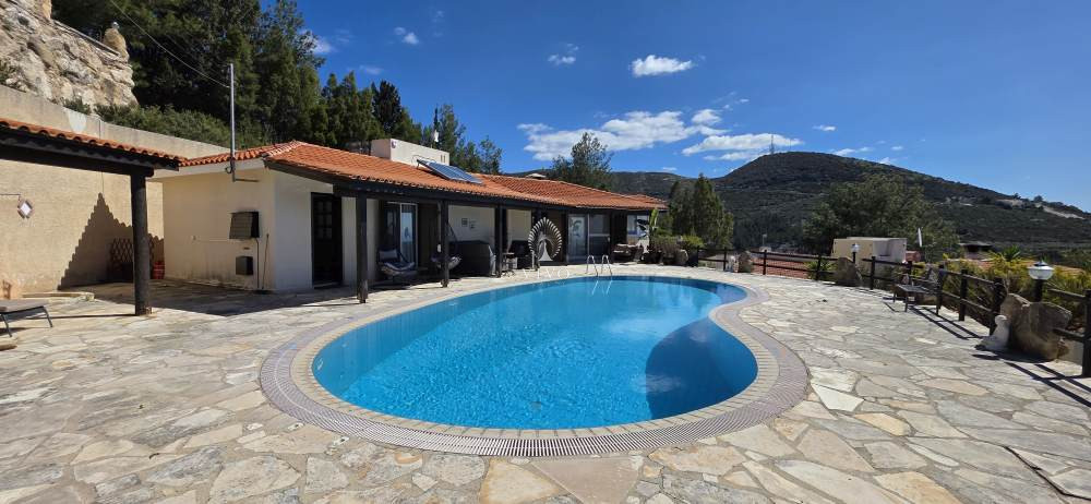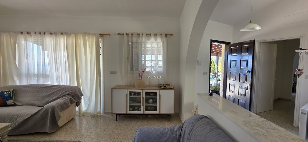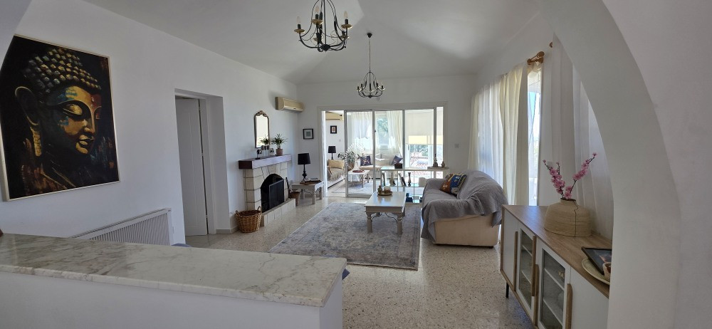 This exceptional detached bungalow is available for long-term rent in the peaceful and sought-after area of Kamares, Tala. Nestled in a quiet residential neighborhood with minimal traffic, the property offers a calm and relaxing atmosphere, ideal for those seeking privacy, comfort, and truly breathtaking sea and mountain views. Set on a level plot, the home ensures easy living in a serene environment.