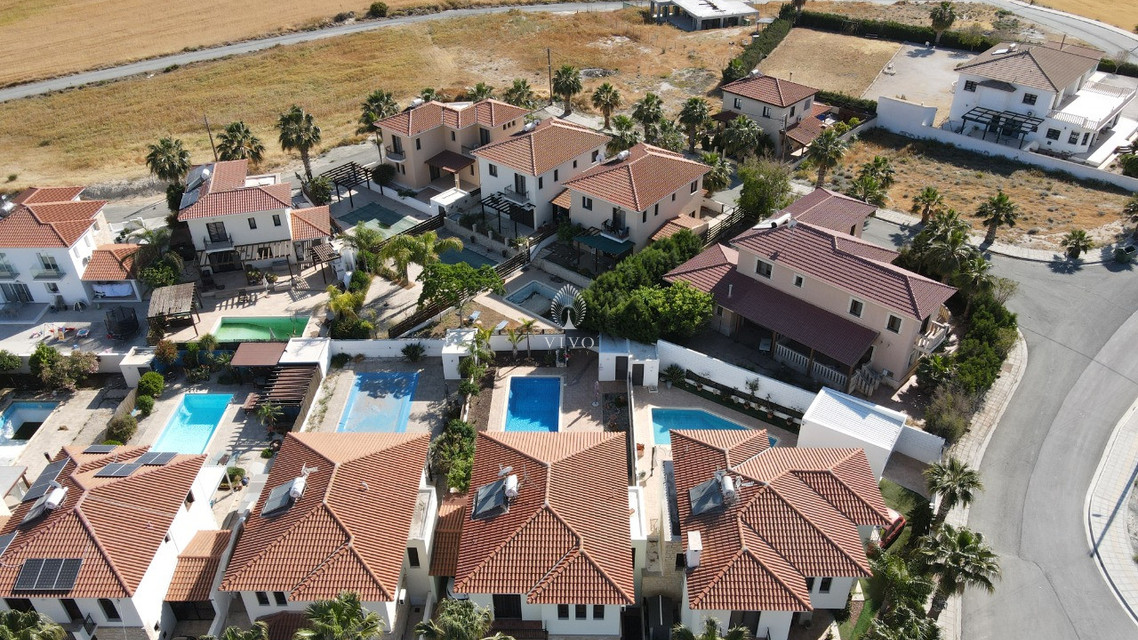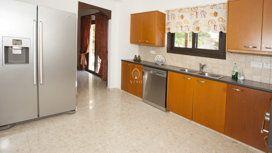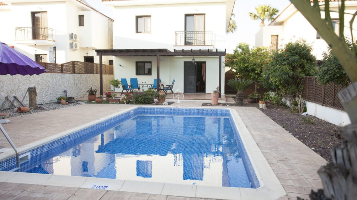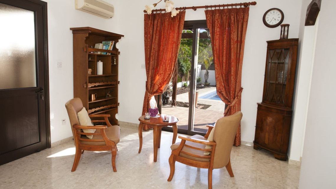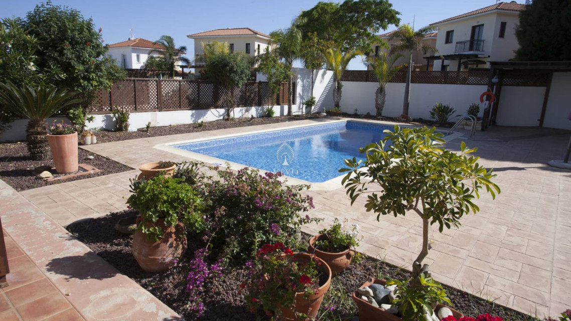 Originally designed as a 4-bedroom home, the owners have cleverly utilized the master bedroom's exceptional size to incorporate a private office space—ideal for remote working or as a study area. The established gardens provide lush, low-maintenance greenery, while the good-sized pool is perfect for enjoying Cyprus's year-round sunshine.