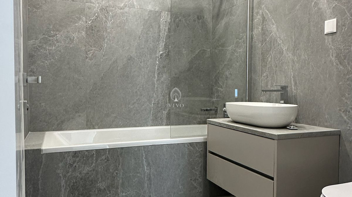 Thoughtfully designed single-level living with a spacious open-plan living and dining area, wood-burning fireplace, and panoramic mountain windows. Two bedrooms with built-in wardrobes, a modern open-plan kitchen, main bathroom, and guest WC. Kitchens, wardrobes, and doors are Italian-produced; appliances carry the finest German engineering โ dishwasher, induction hob, built-in oven and microwave, full-size refrigerator, extractor hood, and washing machine, all included.