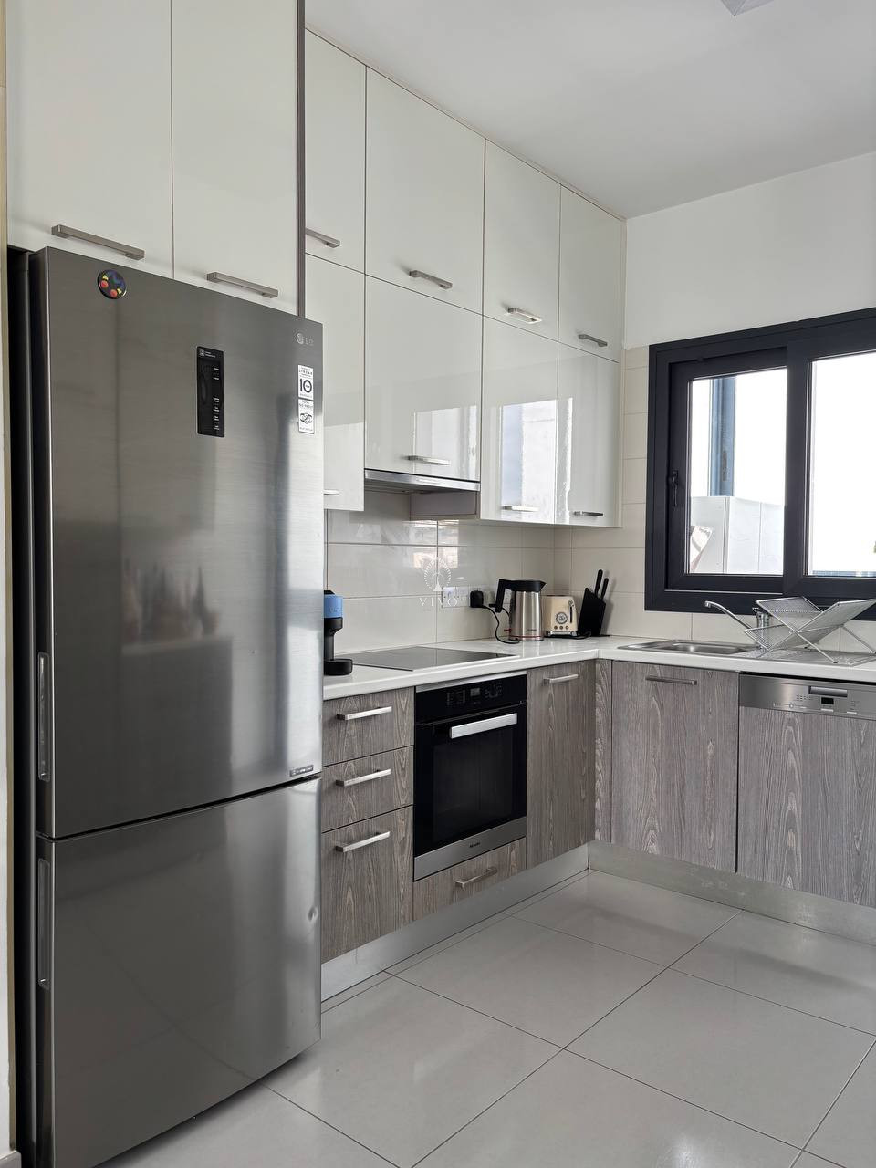 The apartment boasts two generous verandas — one of which is elegantly enclosed with glass walls, offering a versatile space perfect for relaxing year-round regardless of the weather. Additional highlights include a private underground parking space, with the added convenience of a large open area directly opposite the building for extra parking.